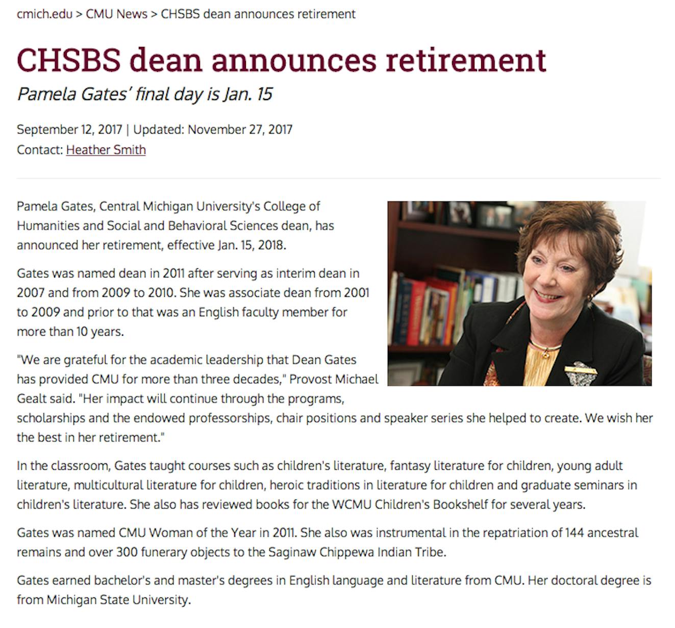 On Sept. 12, Central Michigan University announced that College of Humanities and Social and Behavioral Science Dean Pamela Gates would retire effective Jan. 15.