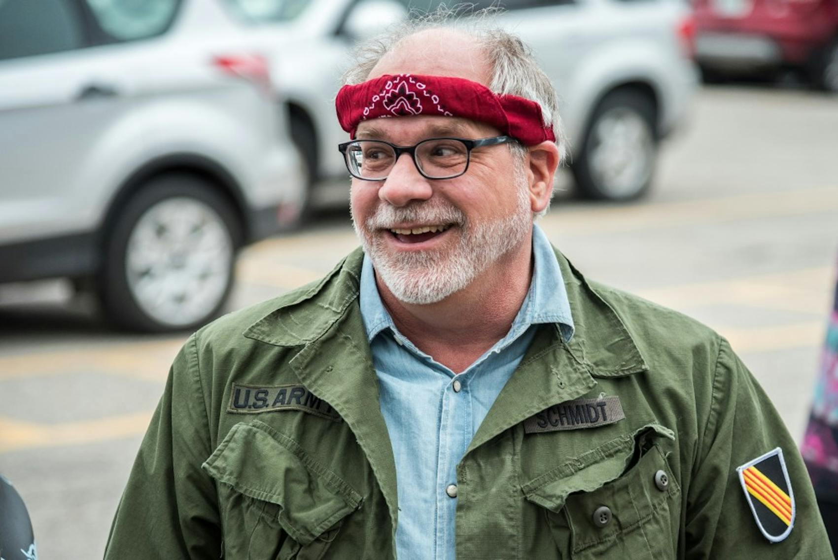 Martin’s costume consists of a red bandana, bell-bottom pants and a military jacket. While hippies in the 1960s often despised military members, Martin said the olive-green jacket honors William Nolde and Donald Schmidt — two former CMU community members who lost their lives in the Vietnam War. Nolde was a professor of military science at Central Michigan University before joining the army. Schmidt was a CMU graduate and ROTC member.