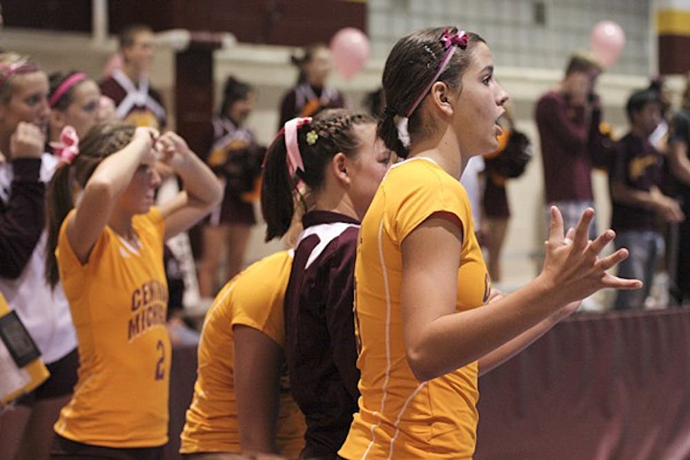 The Central Michigan women's volleyball team continued its struggle in five-set matches Friday, losing 3-2 against Northern Illinois at Finch Fieldhouse.