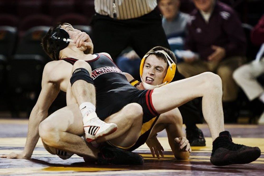 WITH SLIDESHOW: Wrestling rolls over NIU Friday, falls in Ann Arbor Sunday