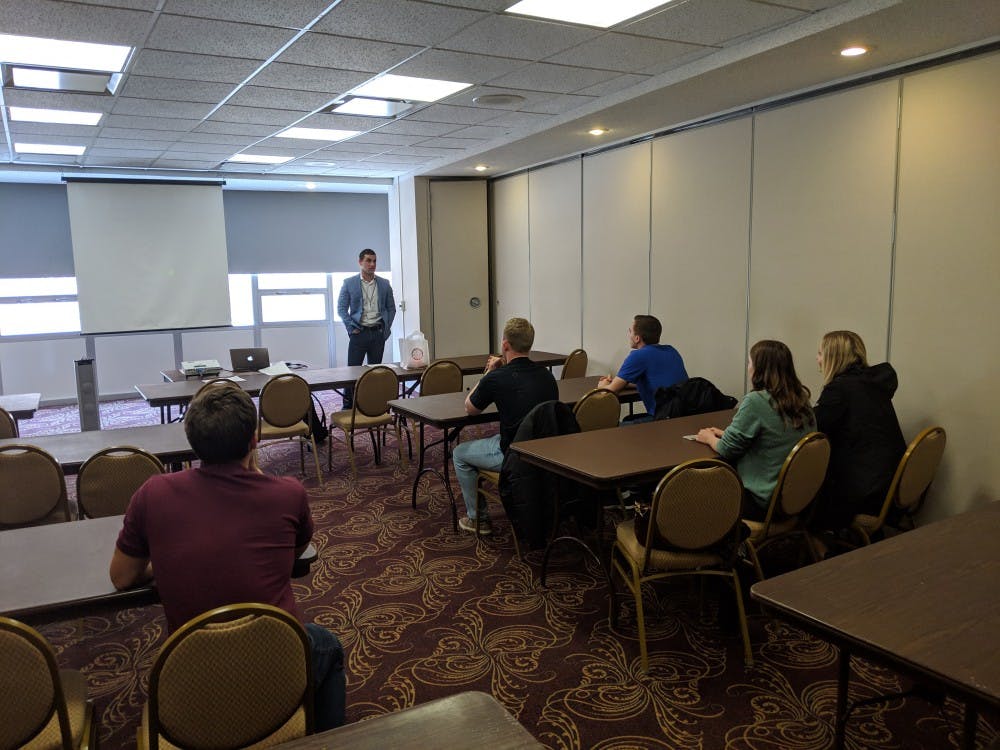 CMU alumnus Anthony Lazzaro gives his afternoon presentation "Student Loan Calculator" at the Journey to Financial Wellness Conference on April 17 in the Bovee University Center.