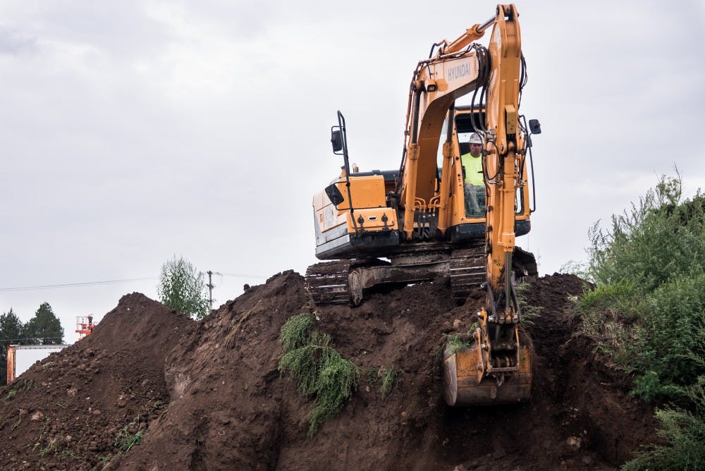 Foreman Garth Casey of Fisher Contracting excavates a pile of top soil Aug.15 at the site of Central Michigan University's future Integrated Health Studies building.