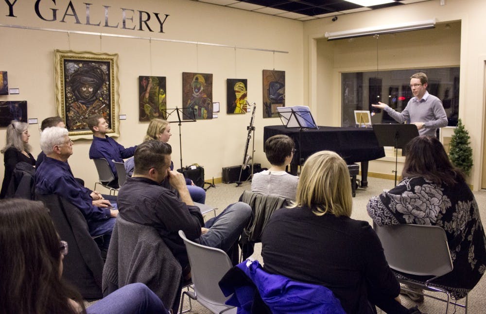 Central Michigan english professor Jeffrey Bean speaks to the audience during Art Reach's Literary Series event on March 2 in downtown Mount Pleasant.