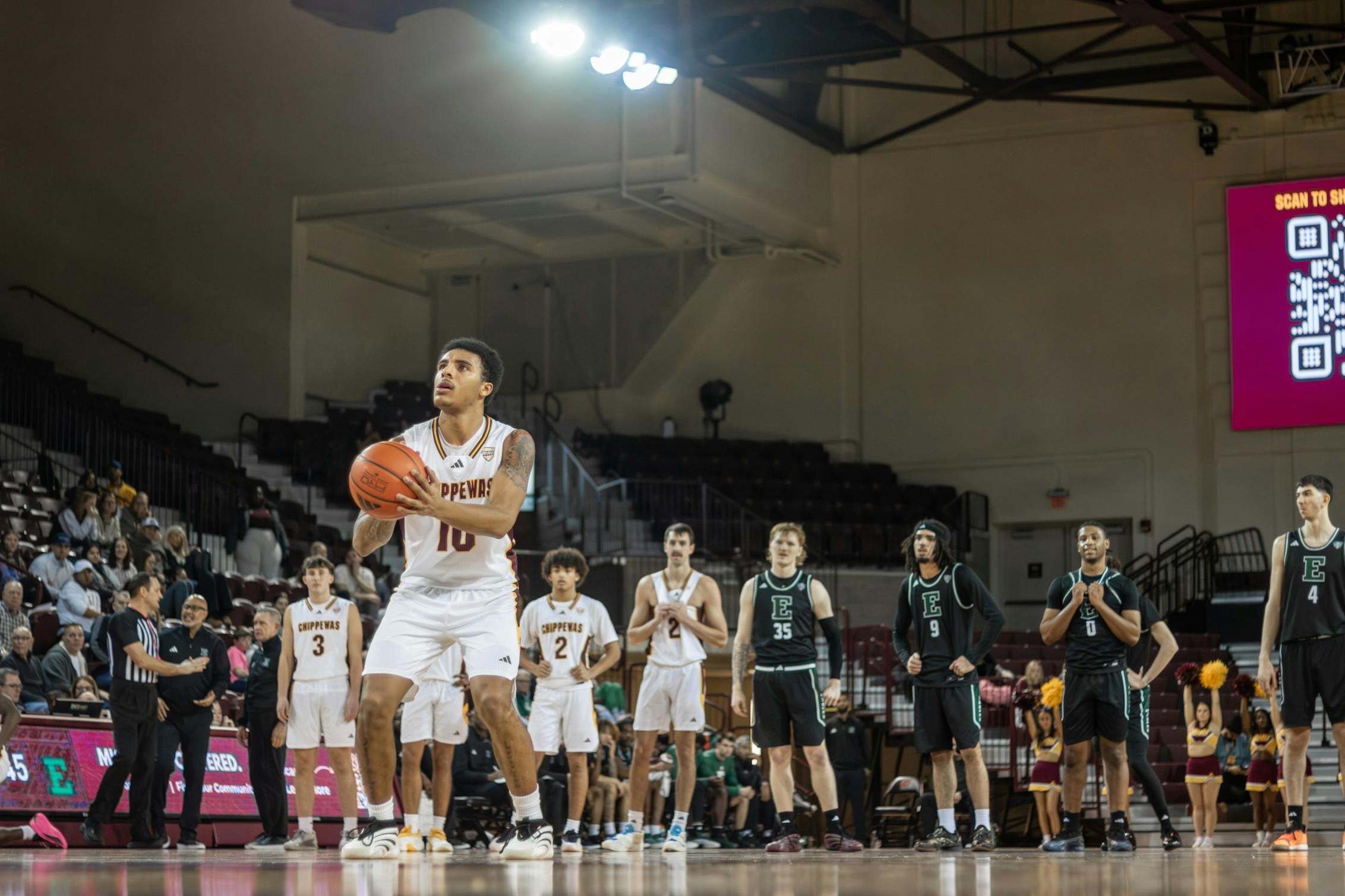 Freshman guard Jalen Kampen hit a three with just under a minute left in the game against Eastern Michigan on Tuesday. The crowd erupts in cheers. It was not because the shot took the lead or tied the game, although. It was because the shot brought the Chippewas to an even 100 points, a mark not hit since Nov. 25, 2025.