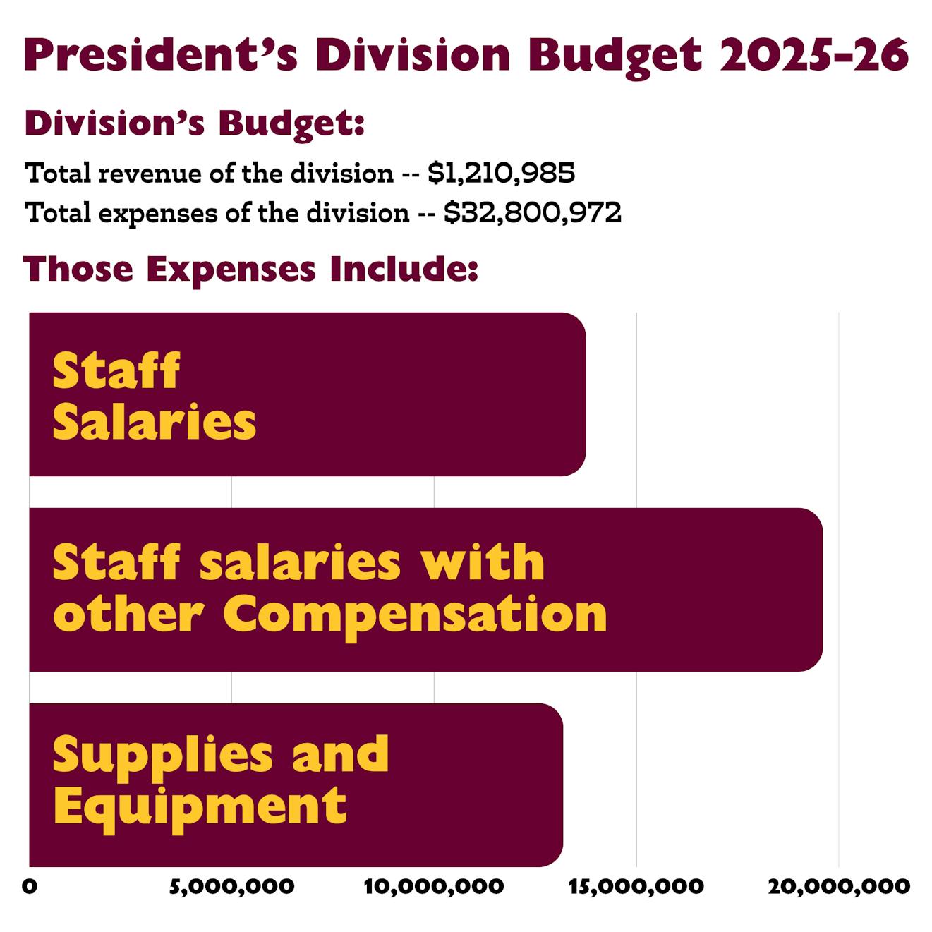 In addition, CMU’s Operating Budget reflects the President’s Division revenue and expenses. The President’s Office is a small component of the overall division budget, Garrison said.