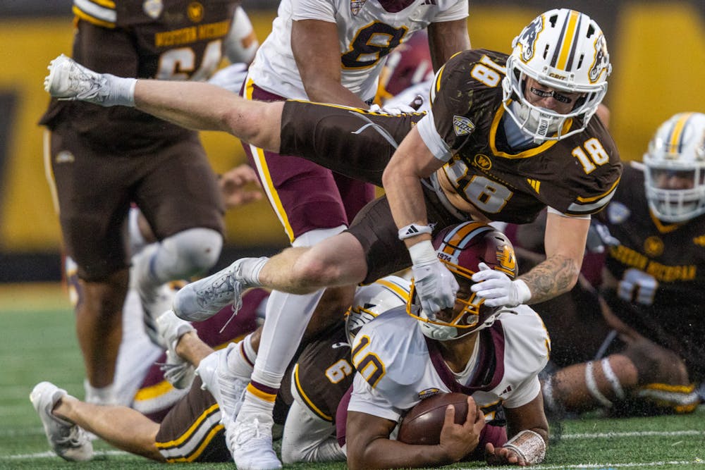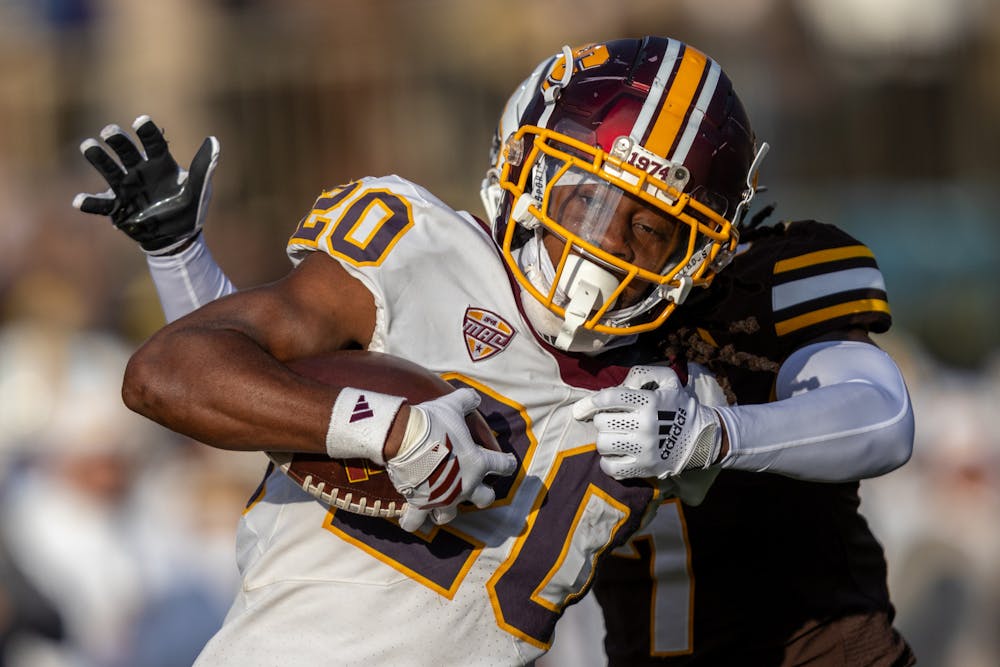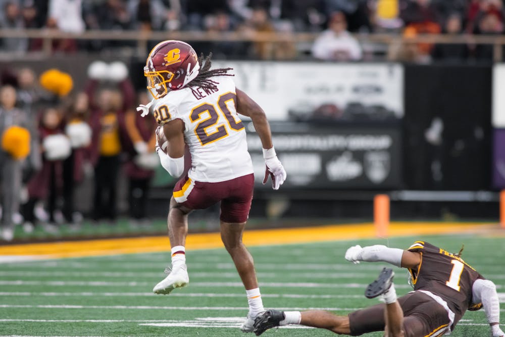 Central Michigan lost to its rival, Western Michigan 24-21, at Waldo Stadium in Kalamazoo, MI, on Saturday, Nov. 1, 2025. Central Michigan redshirt senior Joe Labas threw for 152 yards, one touchdown and one interception. Central Michigan redshirt junior Langston Lewis had a career high of 111 receiving yards and a career-long 77-yard touchdown reception. Central Michigan redshirt senior linebacker Dakota Cochran made a career high 11 tackles, including one forced fumble. Central Michigan comes back home to play Buffalo on Wednesday, Nov. 12, 2025.