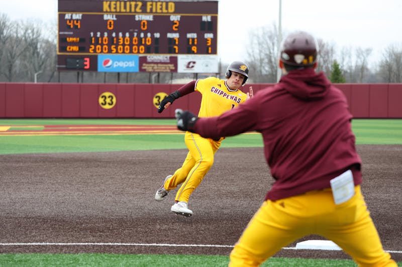 The Central Michigan University baseball team defeated Western Michigan 8-7 in the first of the three-game series at Keilitz Field at Theunissen Stadium on Friday, April 3, 2026. The game was suspended on Thursday due to lightning and continued on Friday before the doubleheader.