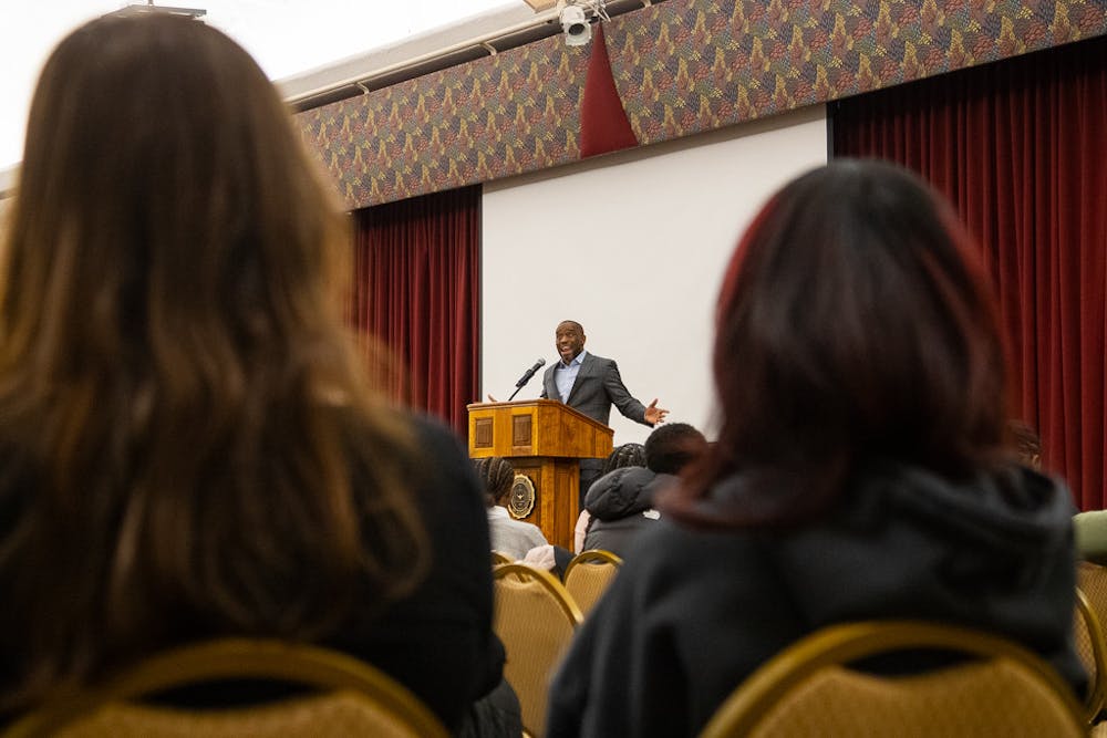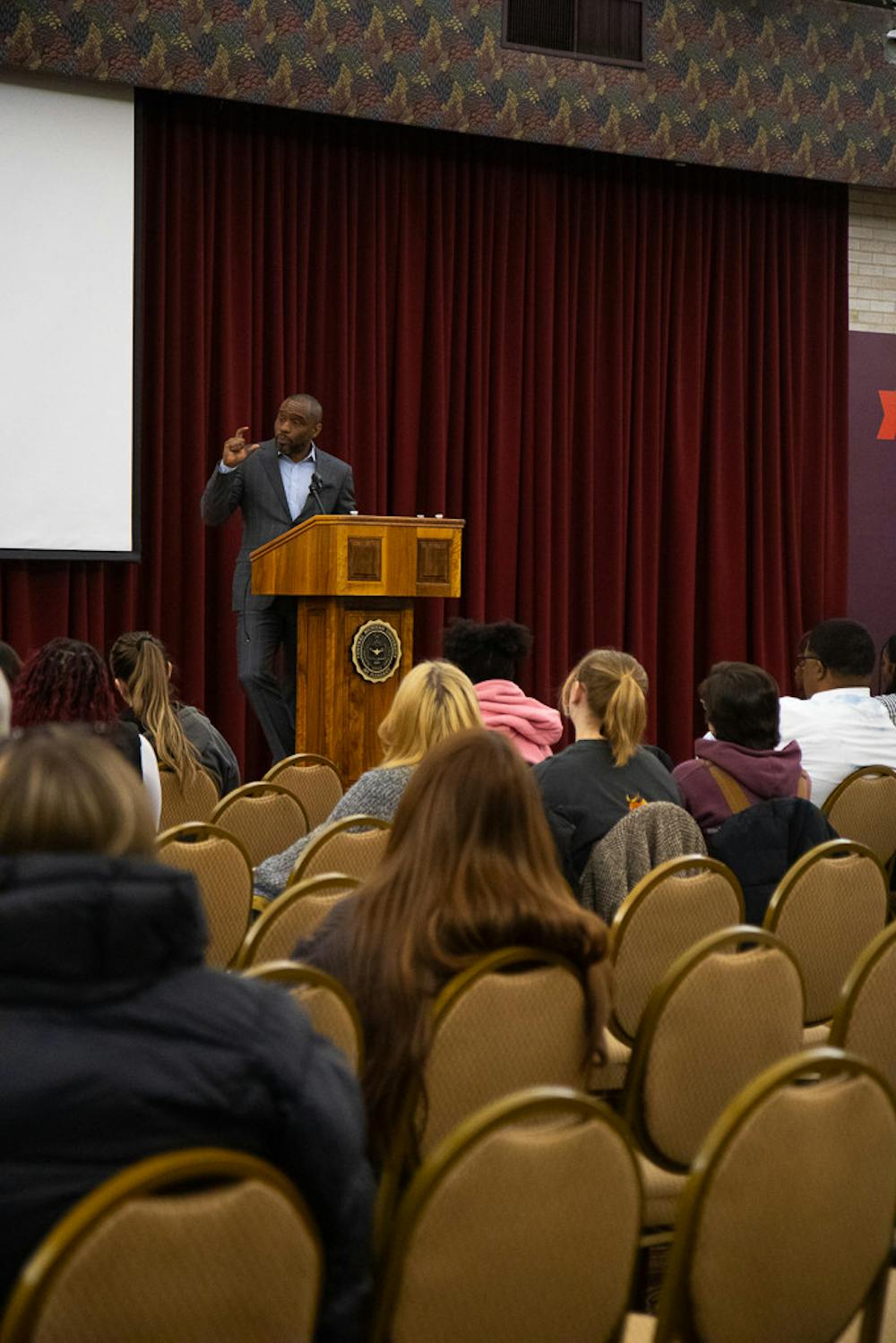 He spoke on the history and impacts of the Black liberation movement, and how it still continues on today. Halfway through the message, Hill paused and asked the audience to join him in honoring Black History Month by singing a song often referred to as "The Black National Anthem," formally known as "Lift Every Voice and Sing." Hill rounded out his time at the poduim by answering questions from the crowd and calling those in attendance to action.