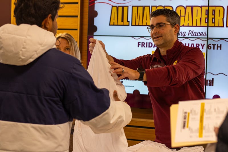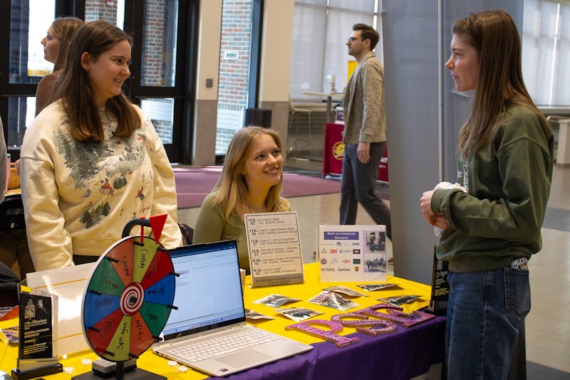 Central Michigan University's College of Business and Administration held its second Involvement fair of the year to help students explore possible majors, minors and organizations in the Grawn Hall Atrium, Tuesday, Jan. 20, 2026. Visitors enjoyed free t-shirts and complementary refreshments while engaging with CBA faculty, academic advisors and experienced students.