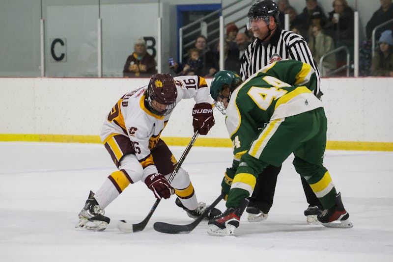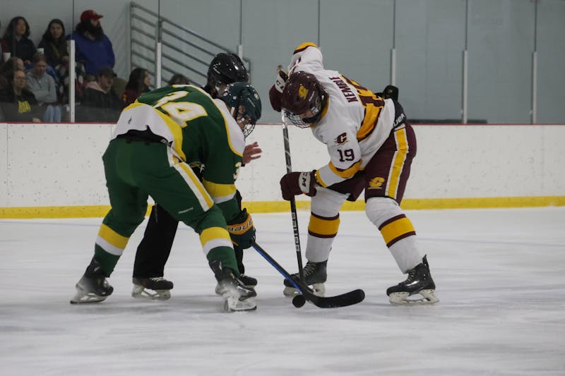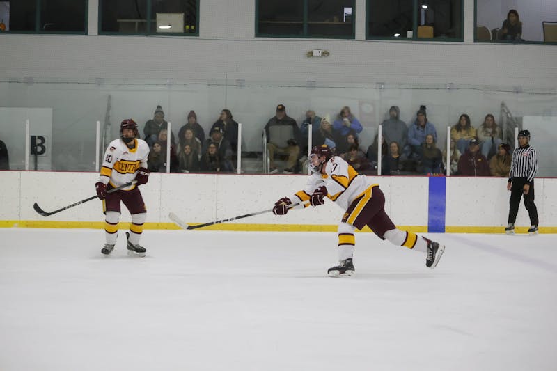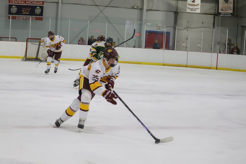 The Central Michigan University D1 men’s hockey team hosted Northern Michigan University for a double header this weekend at Martin Ice Arena. The Chippewas fell 3-2 on Friday, with senior forwards Nate Murawski and Frankie Williamson each contributing one goal. The Chippewas ended the weekend with a 4-3 win during the second game on Saturday. Senior forwards Nate Murawski and Riley Joyce, freshman forward Drake Fletemier and freshman forward Lance Hatfield all scored one goal in the second game against the Wildcats.