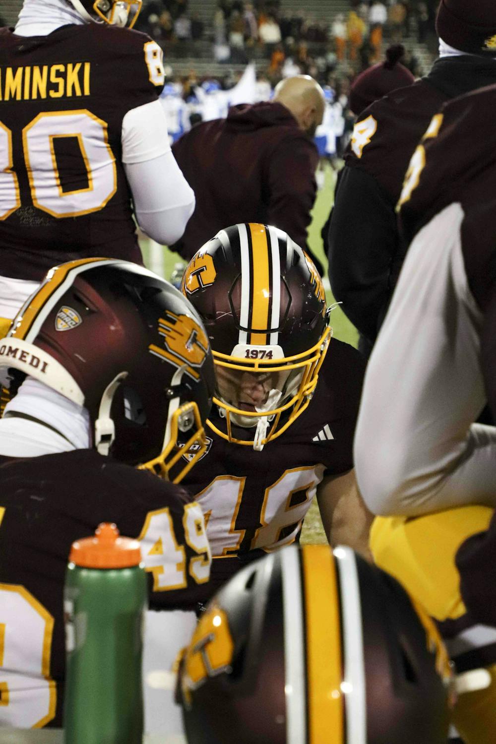 Feature: Central Michigan defeated Buffalo 38-19 in the home MACtion game at Kelly Shorts Stadium, Wednesday, Nov. 12, 2025. Central Michigan's defense forced five turnovers, and redshirt senior quarterback Joe Labas threw 247 yards and achieved two touchdowns. The Chippewas are now eligible for the bowl season.