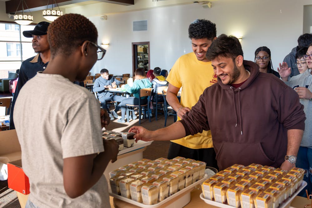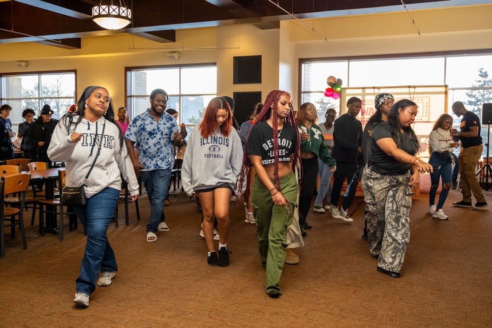 Central Michigan University's dining services hosted "Gather for the Culture" to celebrate Black History Month. CMU students enjoy soul food and dancing during the event, fostering community and connection through shared meals and festivities in Dine and Connect (East community dining hall) on Feb. 19, 2026.