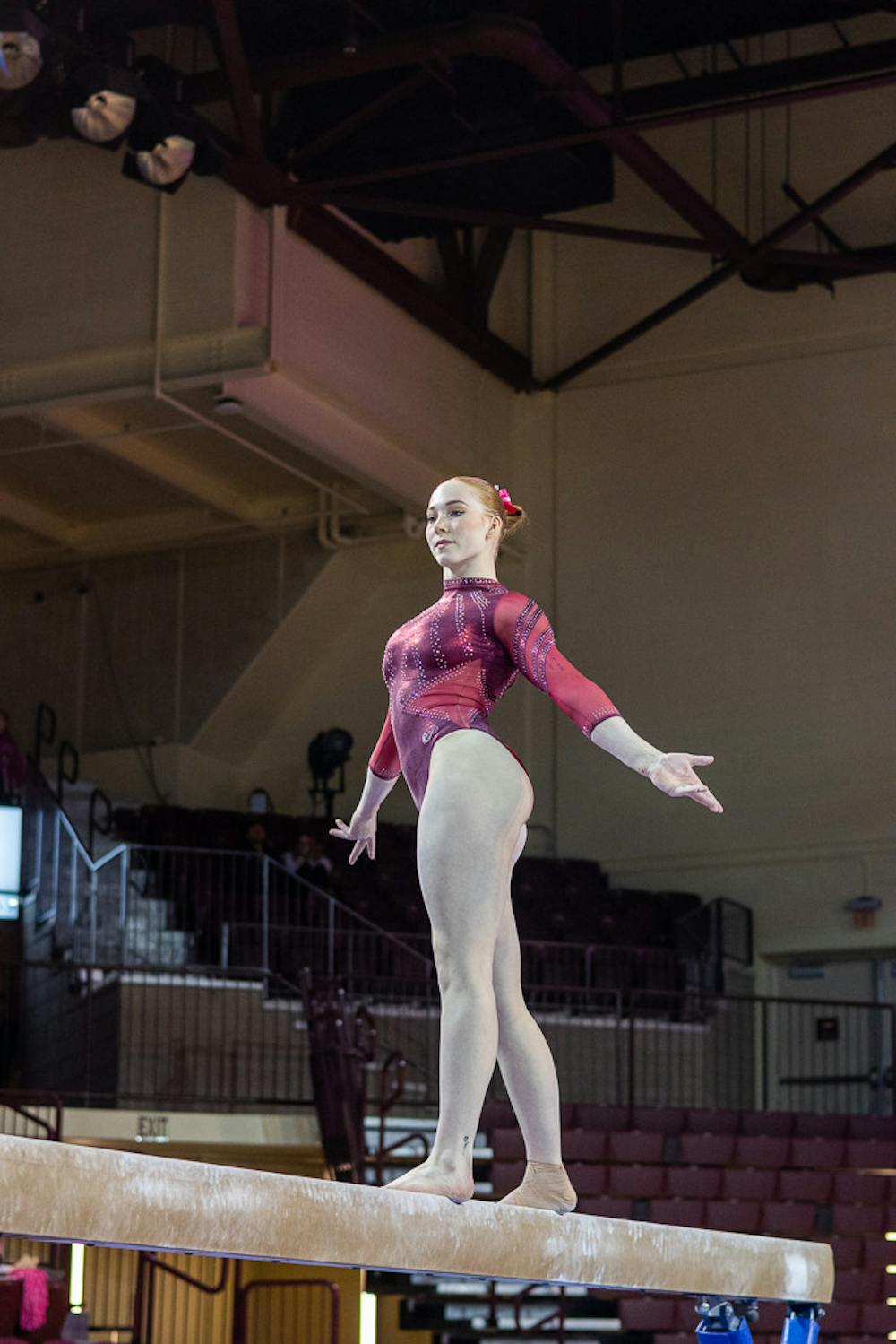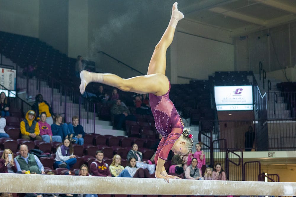 The Central Michigan University Gymnastics team defeated Kent State University by a narrow 0.075 points in McGuirk Arena, Friday, Feb. 13, 2026. Several CMU gymnasts scored new career highs. The team now holds an 8-1 overall record and are undefeated against Mid-American Conference (MAC) opponents.