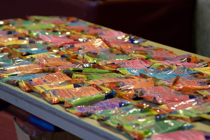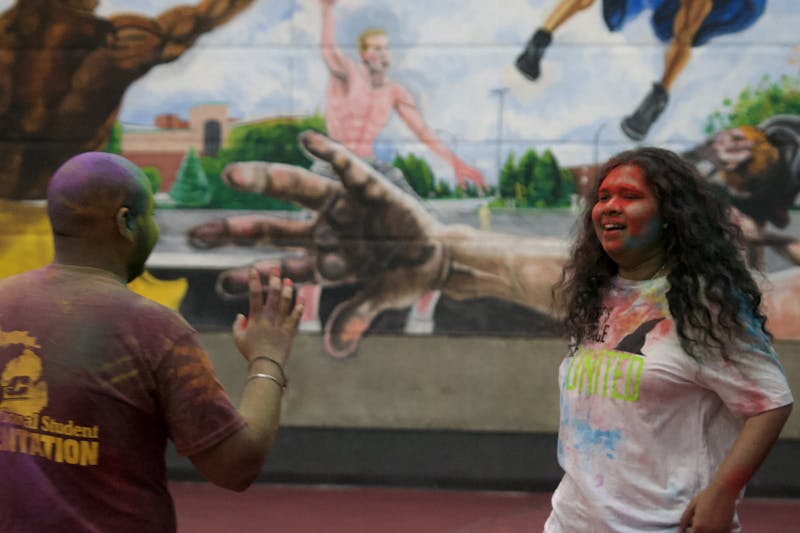 Attendees gather to celebrate Holi in the Student Activity Center, on Sunday, March 23, 2025. The festival of colors encouraged tossing vibrant powders into the air and embracing the spirit of unity. Sponsored by the Multicultural Academic Student Services and put together by Chamakta Central, the event brought the community together, highlighting the cultural significance of Holi.