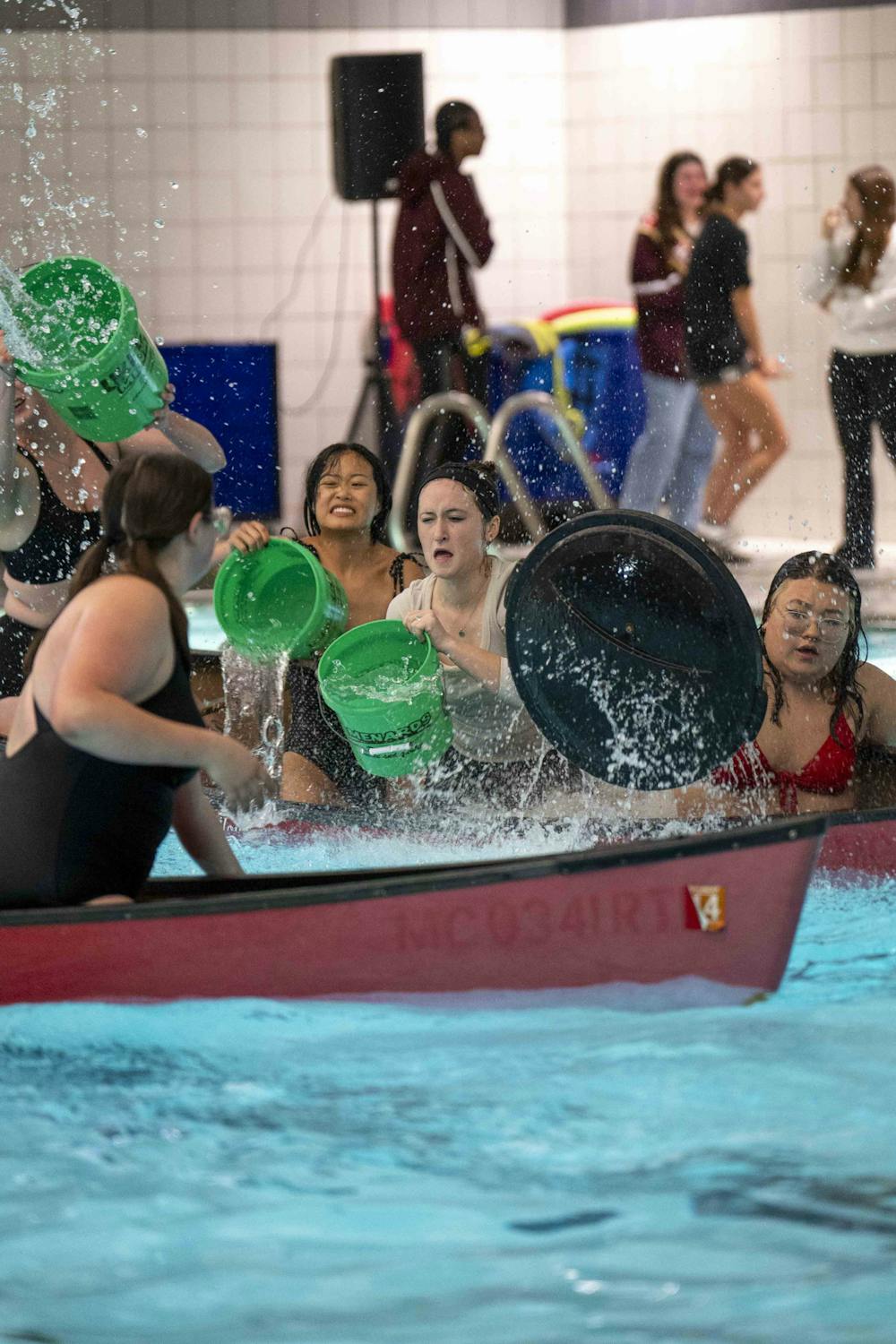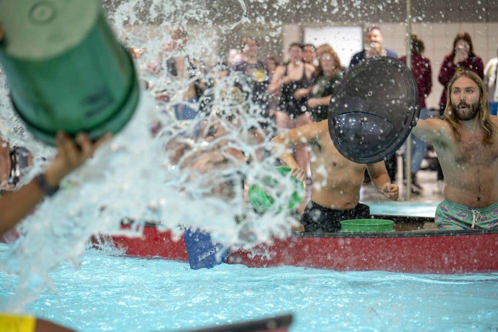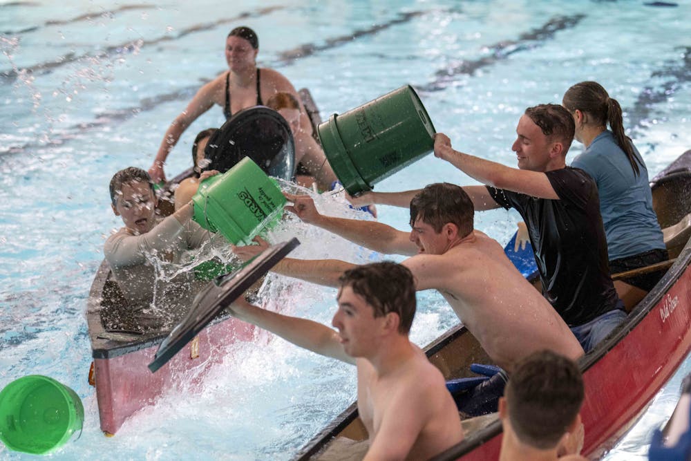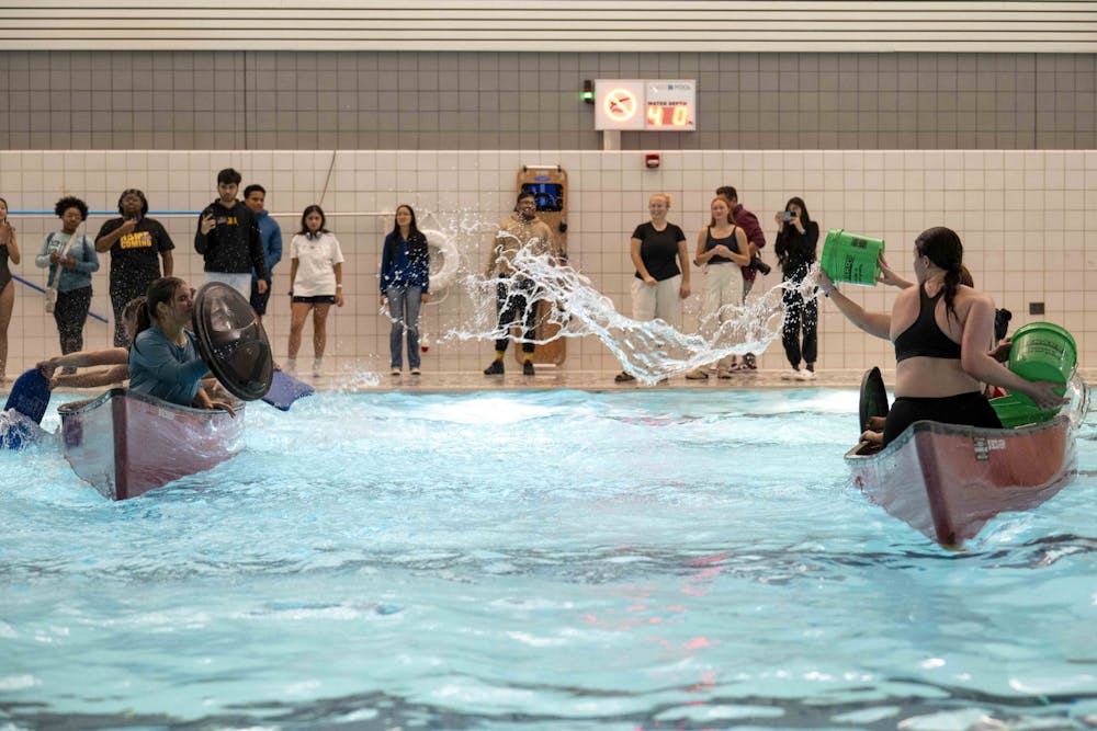 The Central Michigan Office of Student Activities & Involvement hosted the annual Homecoming Battleship Competition between all Residence Hall Community Councils at the Student Activity Center Pool, Wednesday, Oct. 22, 2025. Teams were given equipment to attack other canoes with water to eventually sink their opponent, as well as using the equipment as shields to protect water from getting in the boat. Participation in the event awarded teams with 20 points and first place won 100 points, second won 70 and third won 50. The Saxe/Herrig/Celani Residence Hall Community Council came in first place.