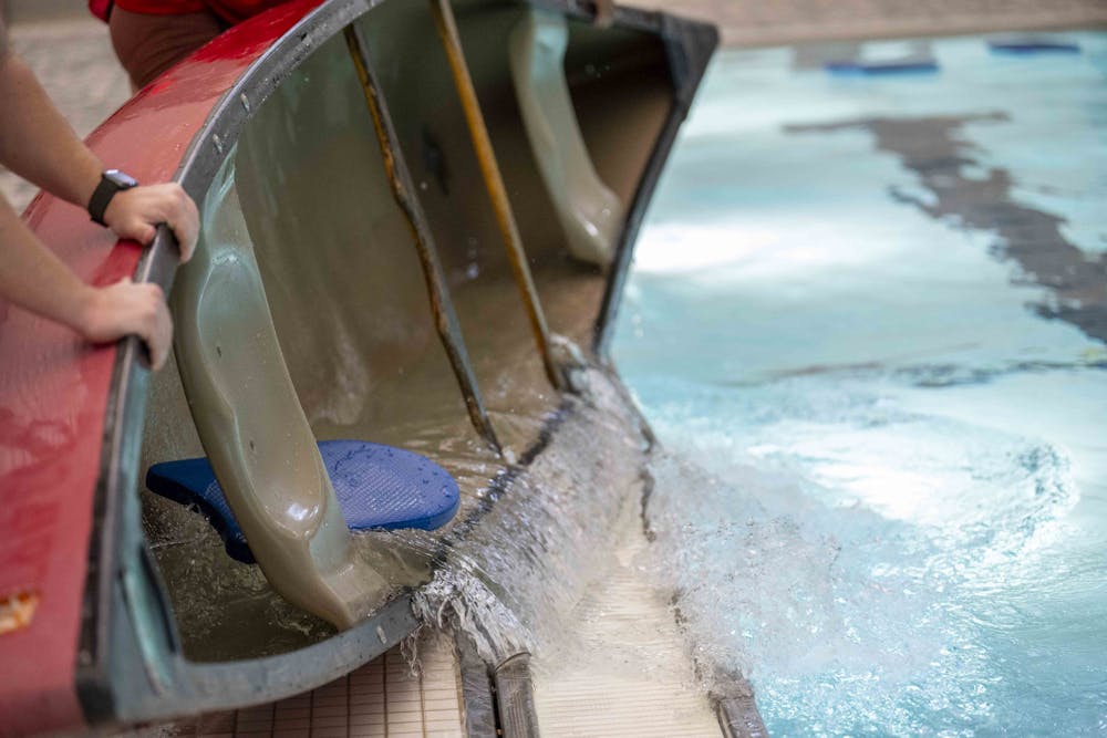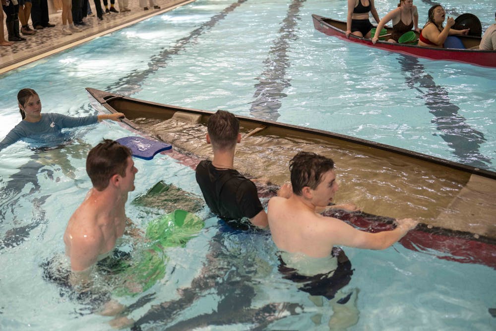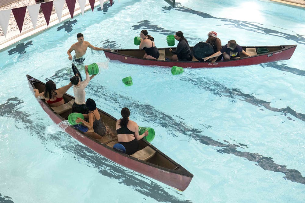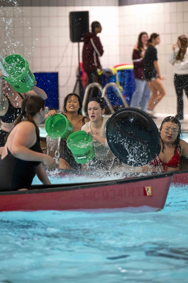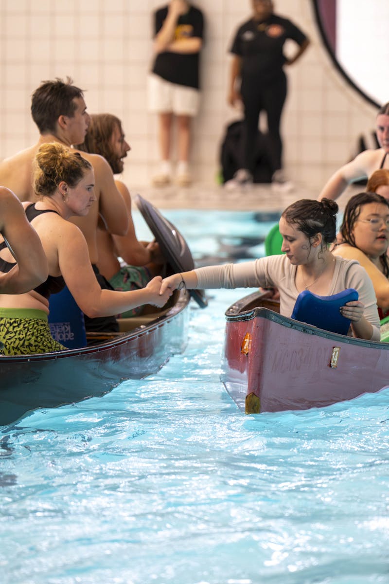 The Central Michigan Office of Student Activities & Involvement hosted the annual Homecoming Battleship Competition between all Residence Hall Community Councils at the Student Activity Center Pool, Wednesday, Oct. 22, 2025. Teams were given equipment to attack other canoes with water to eventually sink their opponent, as well as using the equipment as shields to protect water from getting in the boat. Participation in the event awarded teams with 20 points and first place won 100 points, second won 70 and third won 50. The Saxe/Herrig/Celani Residence Hall Community Council came in first place.