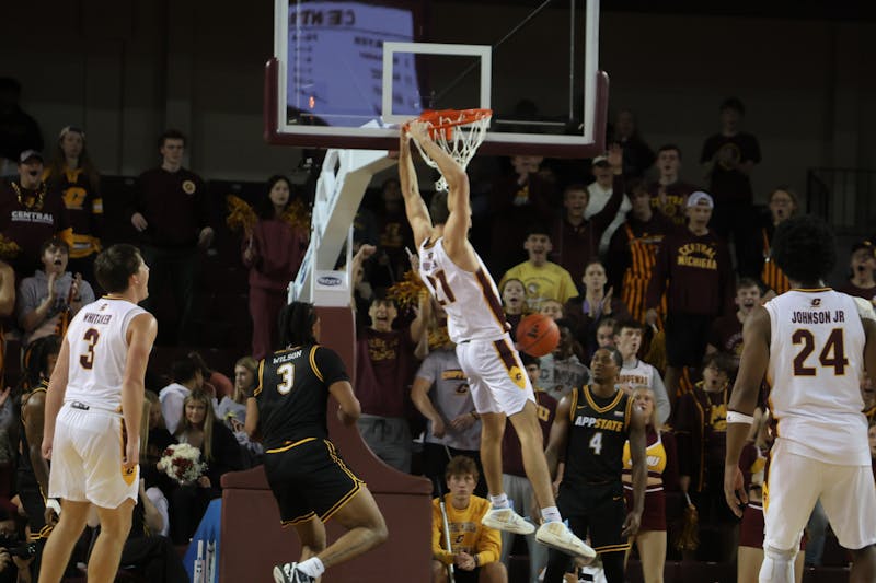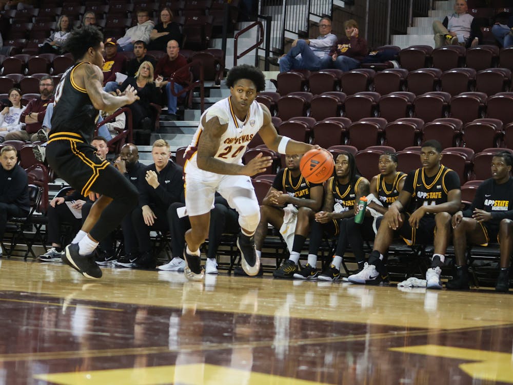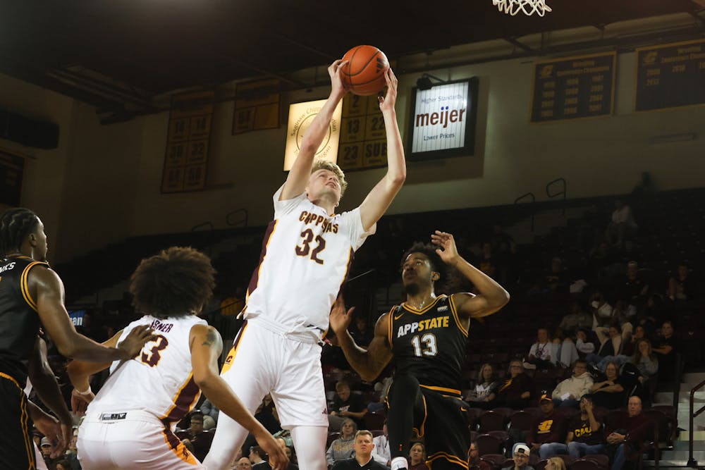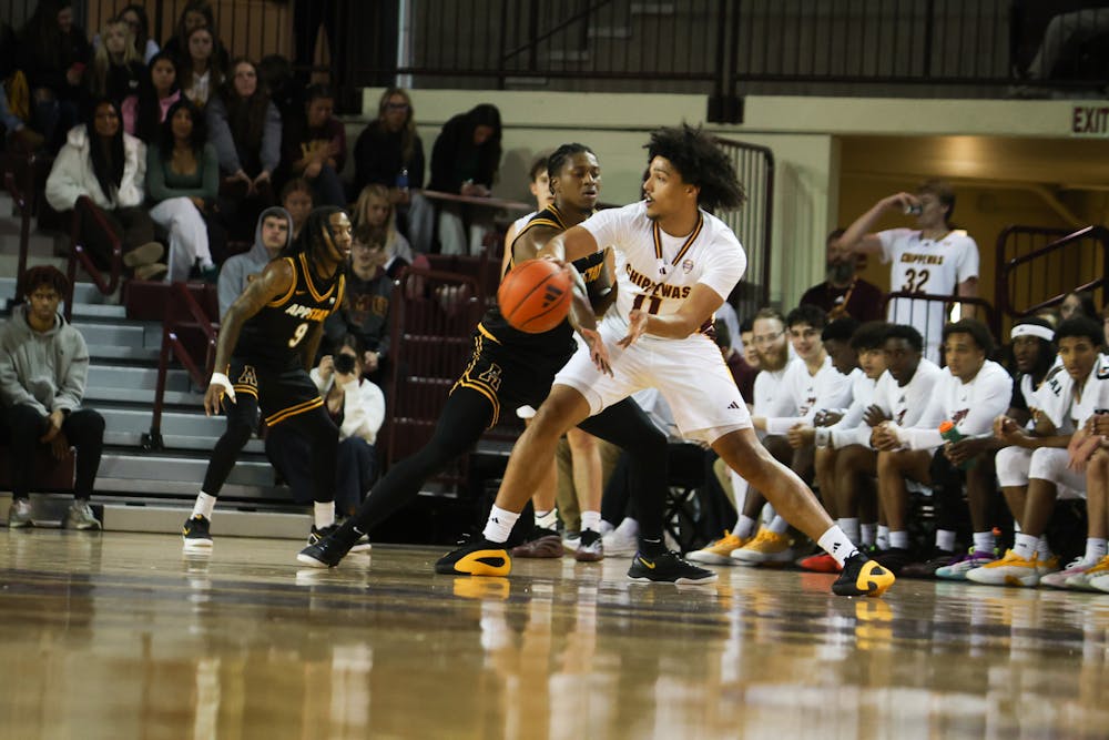 The Central Michigan University men’s basketball team defeated Appalachian State 82-66 at McGuirk Arena, Monday, Nov. 3, 2025. Senior guard Tamario Adley led the team, scoring 22 points, and senior guard Logan McIntire scored 14. The team will head to Peoria, Illinois, to face the Bradley University Braves on Saturday.