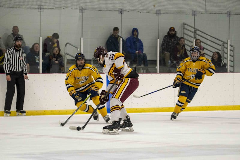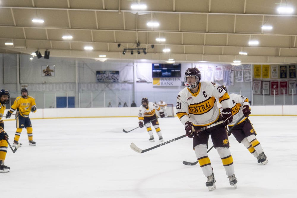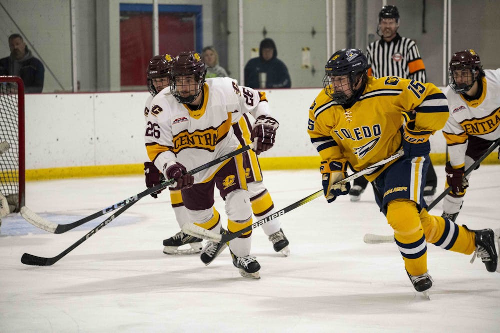 The Central Michigan men’s D1 hockey team lost against the University of Toledo 5-1 at Martin Ice Arena on Friday, Oct. 3, 2025.
