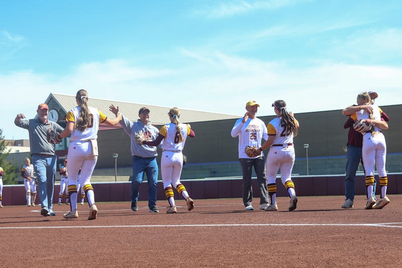 The Central Michigan University softball team fell 8-0 in game three against the Miami University Redhawks at Margo Jonker Stadium on Sunday, April 26, 2026. The team celebrated their seniors, outfielder Paige Saylor, pitcher Mackenzie Langan, infielder Angela Petrovitch, and pitcher/utility player Cierra Laska in a pregame ceremony where the players caught pitches from their dads. Along with a pregame ceremony, seniors also received framed jerseys postgame. The team will head to face Akron for the last regular three-game series of the season, starting on Friday, May 1, 2026.