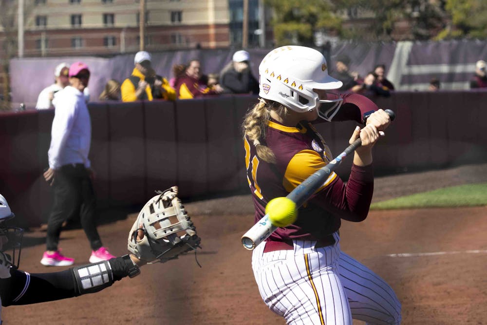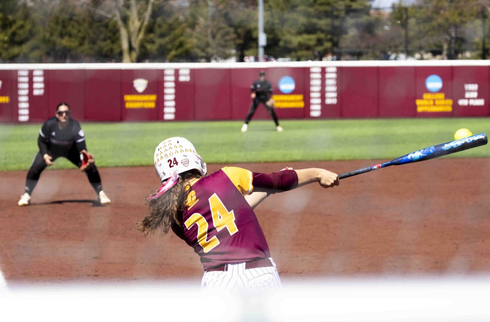 Central Michigan University softball earned a split against the University of Massachusetts with a 3-5 loss in the first game and a 7-2 victory in the second game at Margo Jonker Stadium, Saturday, April 11, 2026. Despite only 3 hits between both teams in the first three innings of the second game, CMU was able to get on track with two RBI doubles by sophomore Alexa Carter, to put the team up 2-0. Central Michigan is now 19-16 in the season and 10-6 in the Mid-American Conference.