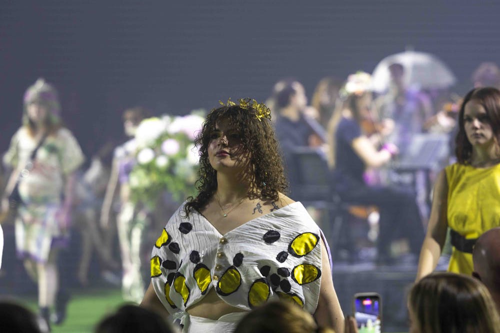 Central Michigan University hosts its annual Threads Fashion Show at Finch Fieldhouse, Saturday, April 11, 2026. Student models walked the runway showing off intricate creations designed by Central Michigan student designers that was watched by students, faculty and family members.