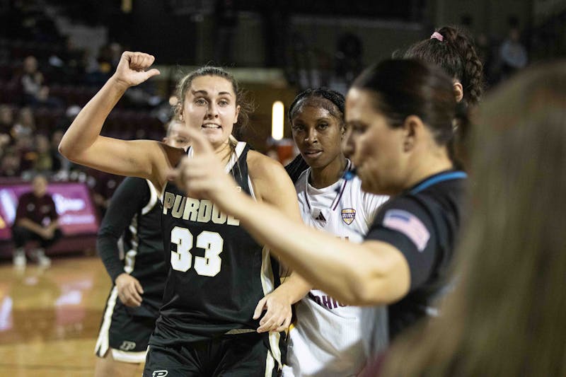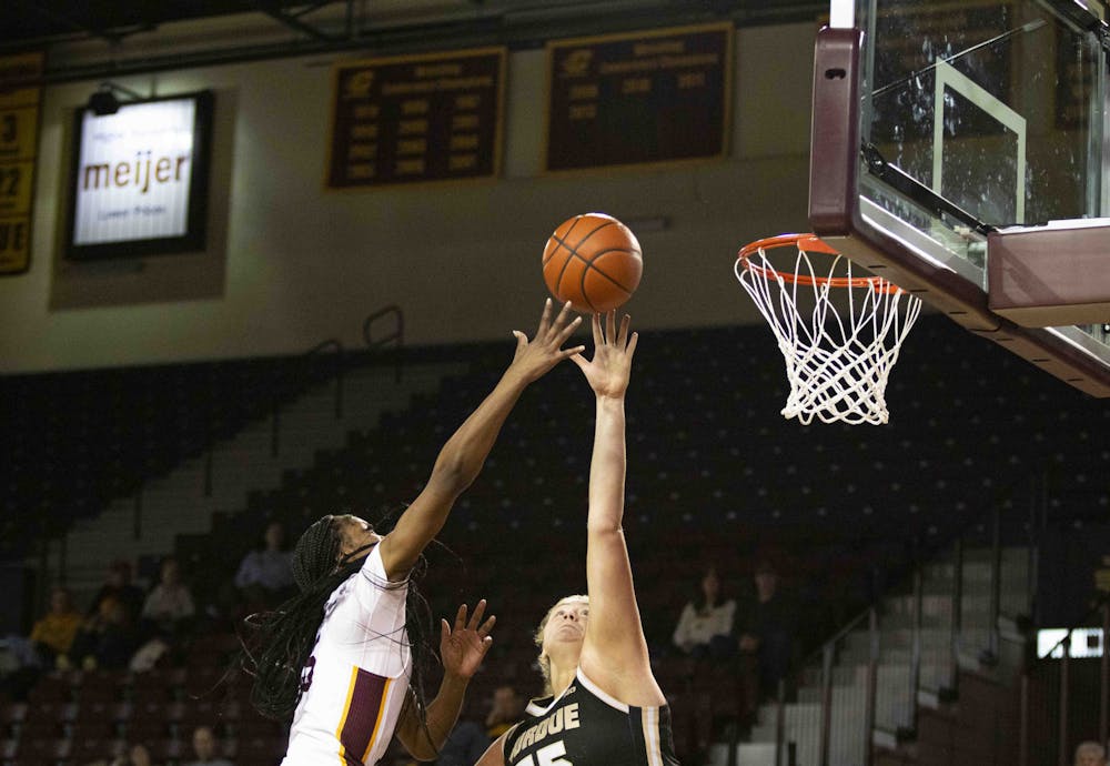 The Central Michigan women's basketball team defeated Purdue 57-55 in a second-half comeback at McGuirk Arena, Sunday, Nov. 30, 2025. Central Michigan shut down the Boilers and only allowed five points in the second half, while ringing in 14 to secure the win. Central Michigan sophomore forward Ayanna-Sarai Darrington led the team with 16 points, while senior guard Taylor Anderson led the team with 13 rebounds for the Chippewas. The Chippewas will travel to Ann Arbor on Dec. 3 to play the University of Michigan.
