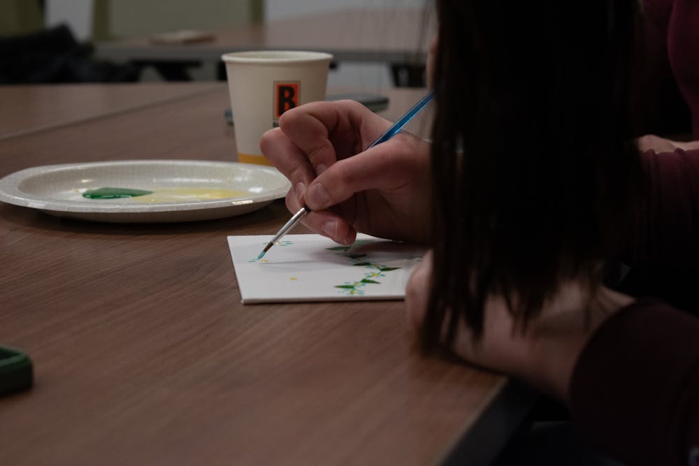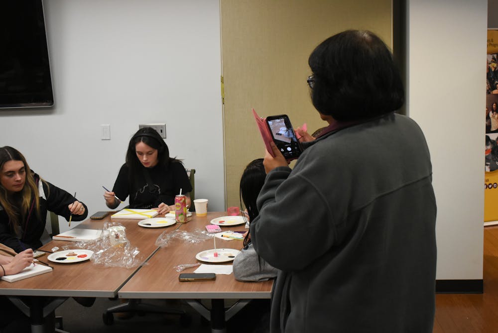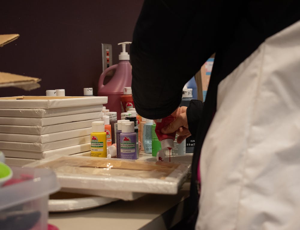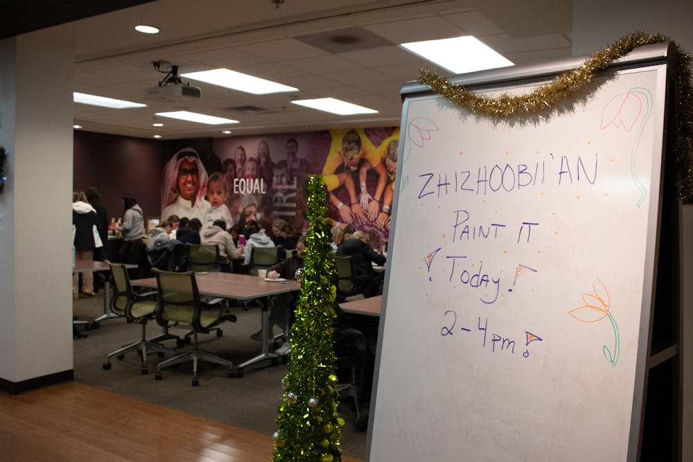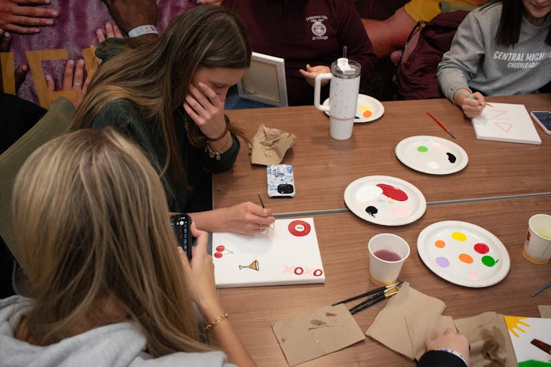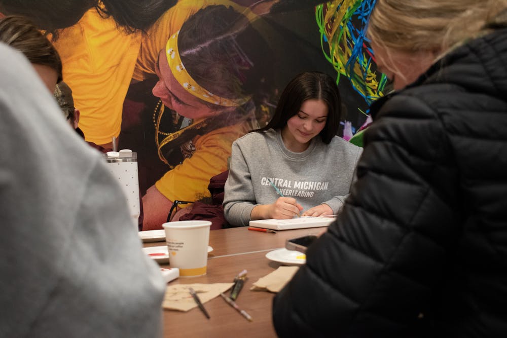 The Central Michigan University Office of Indigenous Affairs hosted a Zhizoobii'an (Paint It) event in the Bovee University Center, Monday, Dec. 1, 2025. Students got to come and learn about rawhide paintings and other native painting styles before painting their own picture. Paint and canvases were supplied to students and everyone got to paint whatever they wanted.