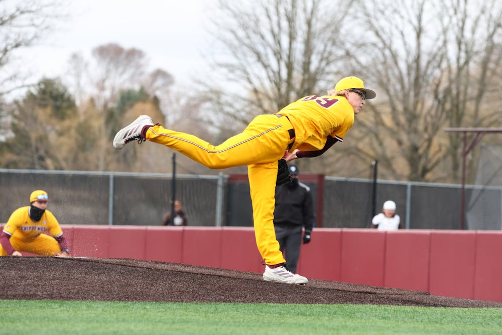 Central Michigan University freshman pitcher Cameron Niehaus opens up pitching the continuance of the first game of the series at the baseball game at Keilitz Field at Theunissen Stadium on Friday, April 3, 2026. (CM Life- Jasmine Brookins)