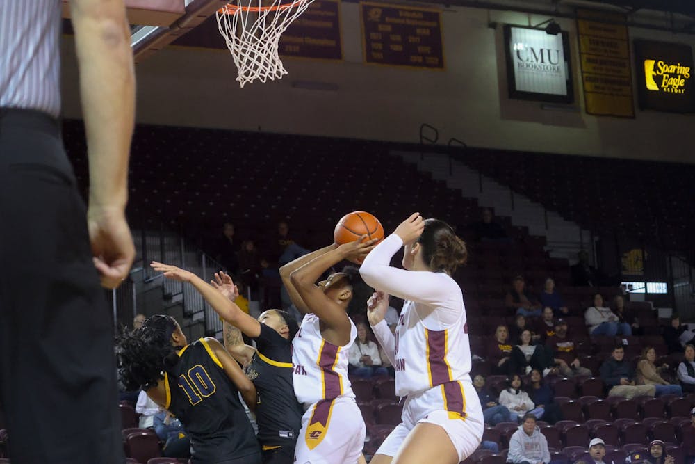 Central Michigan University sophomore guard Madi Morson goes for a layup and scores at McGuirk Arena, Tuesday, Oct. 28, 2025. (CM Life | Jasmine Brookins)