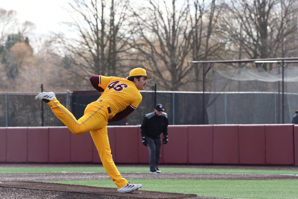 Central Michigan University junior pitcher Gavin Moczydlowsky serves as starting pitcher for the third game of the series against Western at the baseball game at Keilitz Field at Theunissen Stadium on Friday, April 3, 2026. Moczydlowsky pitched for six innings before senior pitcher Jack Potteiger went in. (CM-Life | Jasmine Brookins)