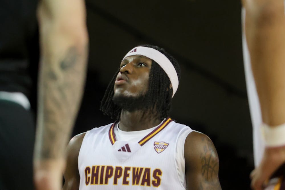 Central Michigan University senior guard Tamario Adley takes the free throw line after being fouled during a basketball game against Eastern Michigan University at McGuirk Arena, Tuesday, Jan. 27, 2026. Adley scored a total of 18 points with five rebounds and six assists. (CM-Life | Jasmine Brookins)