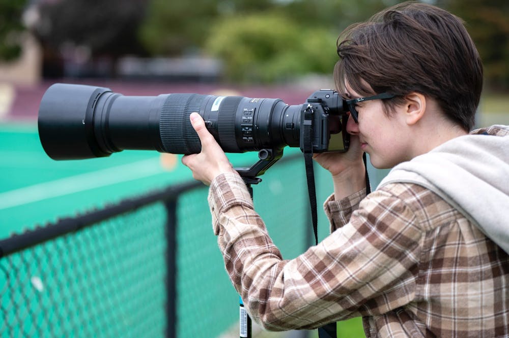 Central Michigan senior Jo Kenoshmeg takes a photo of a field hockey game at Cristy Freese Field, Friday, Sept. 5, 2025.