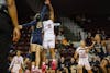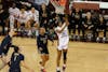 Central Michigan University junior guard Jorden Brooks scores a three-pointer at the basketball game against Northern Illinois University at McGuirk Arena on Saturday, Feb. 14, 2026. Brooks scored a total of three points against the Huskies. (CM-Life | Jasmine Brookins)