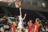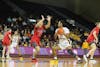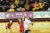 Central Michigan University sophomore guard Madi Morson goes up for two at McGuirk Arena on Sunday, Nov. 9, 2025. Morson scored a total of 10 points and five rebounds. (CM Life | Jasmine Brookins)