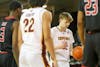 Central Michigan University senior center Nathan Claerbaut takes the line to shoot two free throws at the basketball game against Northern Illinois University at McGuirk Arena on Saturday, Feb. 14, 2026. Claerbaut scored a total of 16 points against the Huskies with one rebound, and one assist. (CM-Life | Jasmine Brookins)