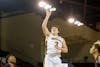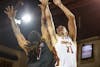 Central Michigan University senior forward Nick Mullen goes up for a two-pointer at the basketball game against Northern Illinois University at McGuirk Arena on Saturday, Feb. 14, 2026. Mullen scored four points, five rebounds and one assist. (CM-Life | Jasmine Brookins)