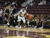 The Central Michigan University women’s basketball team hosts the Davenport University Panthers in their first official home game of the season at McGuirk Arena on Sunday, Nov. 9, 2025. The Chippewas defeated the Panthers 71-44. (CM Life | Jasmine Brookins)