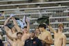 Central Michigan University redshirt senior Micheal Heldman leads the band in the fight song at Kelly/Shorts Stadium on Wednesday, Nov. 12, 2025. As part of the CMU tradition, after every home win, a player takes a position where the drum majors conduct to sing the fight song with the band one last time. (CM Life | Jasmine Brookins)