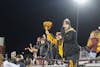 The Central Michigan University Marching Chips play during the fourth quarter as the clock runs down at Kelly/Shorts Stadium on Wednesday, Nov. 12, 2025. The Chips are led by drum majors senior Abigail Russelburg and junior Harry Krafchak. (CM Life | Jasmine Brookins)