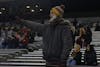 The Central Michigan University student section brings the energy as the clock runs down in the last seconds of the game at Kelly/Shorts Stadium on Wednesday, Nov. 12, 2025. Despite cold weather fans still showed out cheering the team on. (CM Life | Jasmine Brookins)