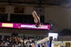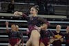 Central Michigan University sophomore Gabrielle Johnson does a double layout dismount off the bars in McGuirk Arena on Saturday, March 22, 2025. (CM Life | Jasmine Brookins)