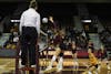 A Central Michigan student cheers in the stands while trying to win a t-shirt at McGuirk Arena, Friday, Nov. 7, 2025. During media timeouts, staff threw out t-shirts to the loudest fans. (CM-Life | Mary Nowosacki)