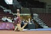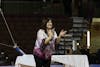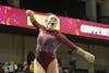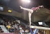 Central Michigan University graduate student Avah Bootz dances during her floor routine at the gymnastics meet against Ball State University in McGuirk Arena on Friday, March 13, 2026. Bootz scored a 9.675 on vault, 9.750 on beam and 9.850 on floor. (CM-Life | Jasmine Brookins)