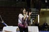 Central Michigan University Head Coach Christine MacDonald talks with freshman gymnast Ashlyn Richards before her beam routine at McGuirk Arena, Friday, Feb. 13, 2025. (CM-Life | Mary Nowosacki)