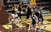 The Central Michigan University dance team performs bringing energy to the crowd at McGuirk Arena on Saturday, Nov. 22, 2025. Freshman dancer Andrew Kequom joined the team starting the fall 2025-26 semester. (CM Life | Jasmine Brookins)