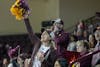 A Central Michigan fan celebrates during the gymnastics meet between Central Michigan and Eastern Michigan at McGuirk Arena, Friday, Feb. 14, 2025. There were 443 people in attendance. (CM-Life | Mark Hoover)