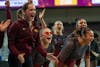 Central Michigan fans celebrate after a floor routine by Central Michigan junior all-around Luciana Alvarado-Reid at the Mid-American Conference gymnastics championship at McGuirk Arena, Saturday, March 22, 2025. Alvarado-Reid scored 9.925, making CMU the only team in the contest to have three gymnasts score 9.900 or higher in the event.