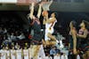 Central Michigan University senior guard Tamario Adley shoots and scores a three pointer at McGuirk Arena on Tuesday, Jan. 20, 2026. Adley totaled 31 minutes of playing time, scoring 20 points.