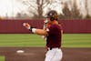 Central Michigan freshman infielder/right-handed pitcher Cayden Smith throws over to redshirt sophomore infielder Bryson Webb to record an out at third base at Keiltiz Field at Theunissen Stadium, Friday, April 18, 2025. Smith went 0-2 with one RBI. (CM-Life | Mark Hoover)