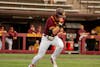 Central Michigan University junior outfielder Rees Campanale races to first base at Theunissen Stadium on Friday, April 18, 2025. Campanale was up to bat four times, scoring one hit. (CM Life | Jasmine Brookins)